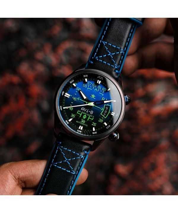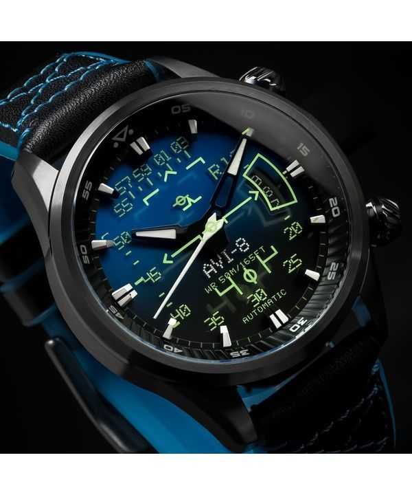 AVI-8 Hawker Harrier HUD Leather Strap Gradient Blue Dial Automatic AV-4117-01 Men's Watch