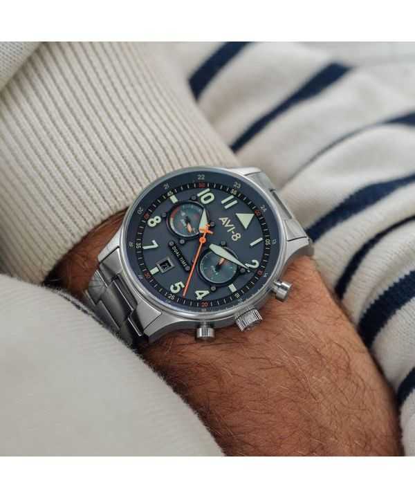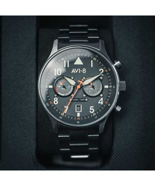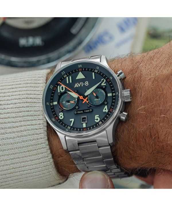 AVI-8 Hawker Hurricane Carey Dual Time Gutersloh Stainless Steel Blue Dial Quartz AV-4088-22 Men's Watch