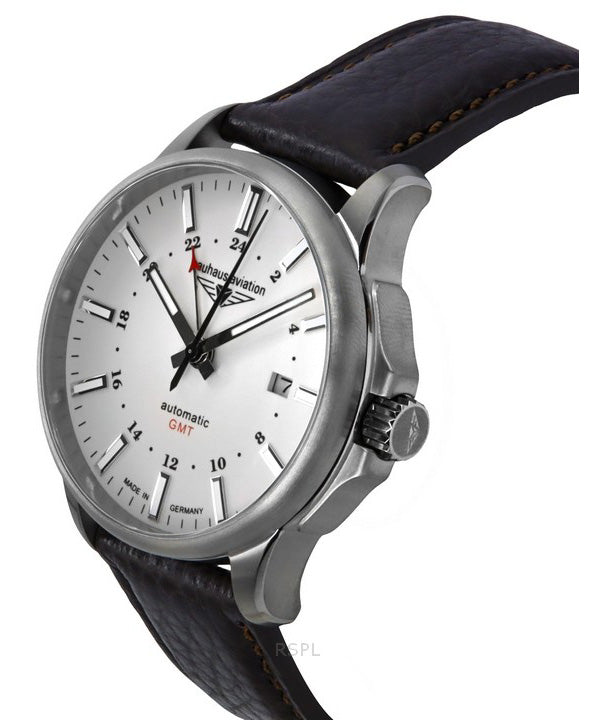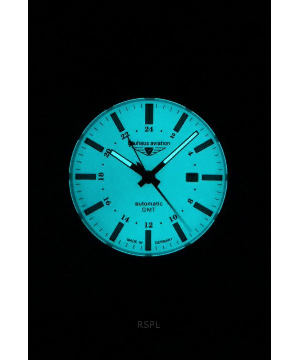 Bauhaus Aviation GMT Leather Strap Full Luminous Beige Dial Automatic 28685 100M Mens Watch