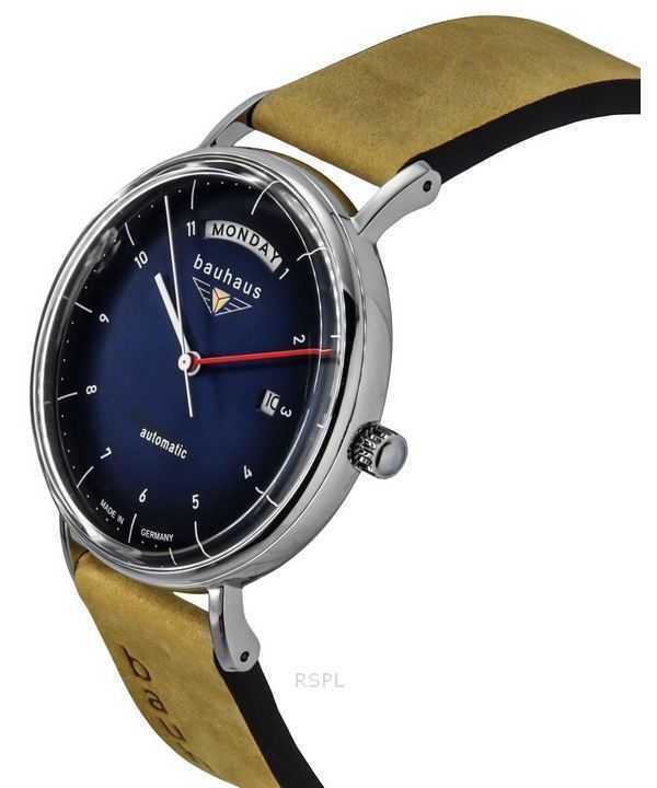 Bauhaus Classic Leather Strap Dark Blue Dial Automatic 21623 Men's Watch