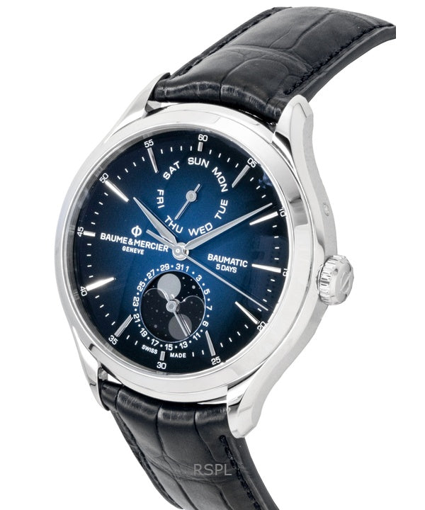Baume & Mercier Clifton Leather Strap Moon phase Blue Dial Automatic M0A10593 Men's Watch