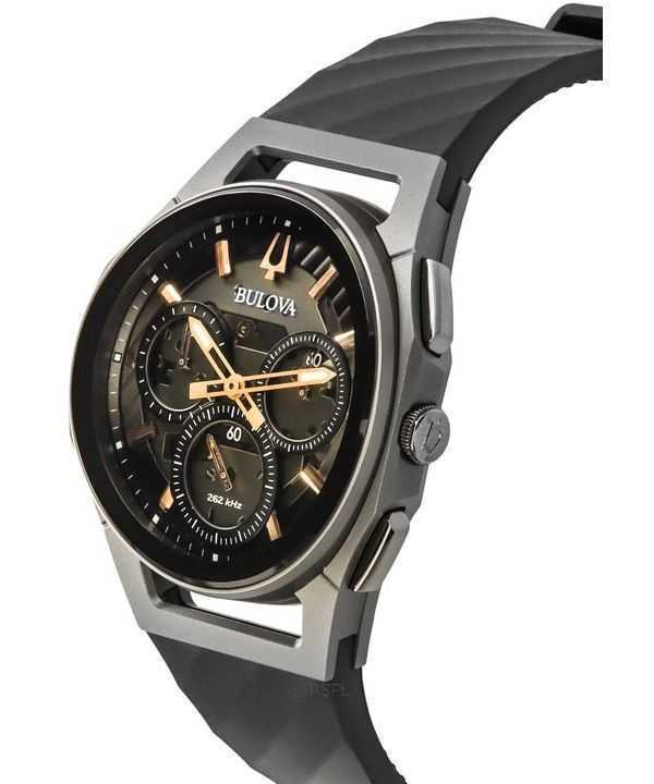Bulova Curv Chronograph Rubber Strap Grey Dial Quartz 98A162 Mens Watch