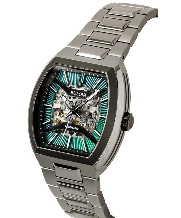 Bulova Maquina Stainless Steel Green Skeleton Dial Automatic 98A321 Men's Watch