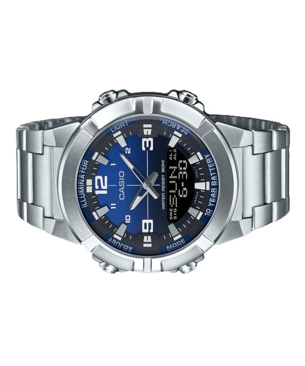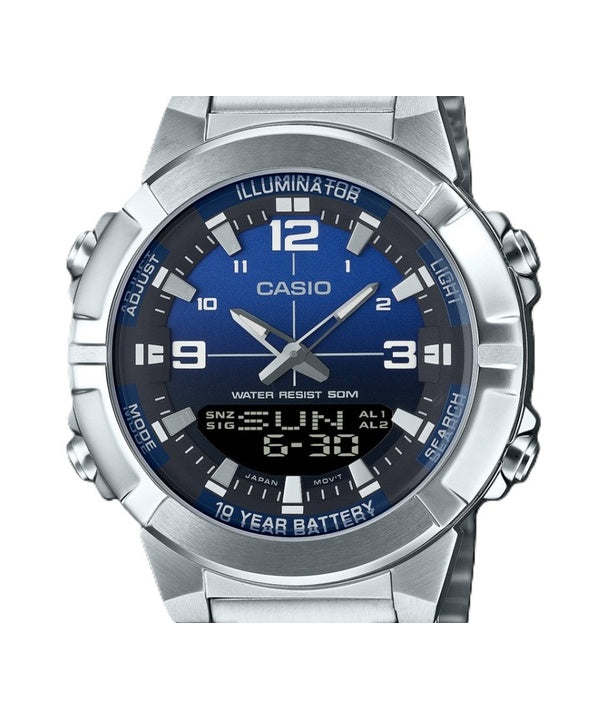 Casio Analog Digital Combination Stainless Steel Blue Dial Quartz AMW-870DA-2A1V Men's Watch
