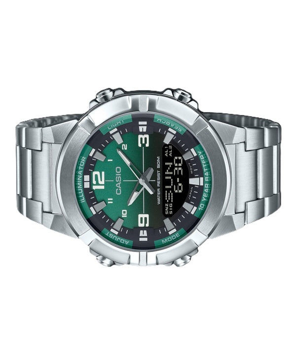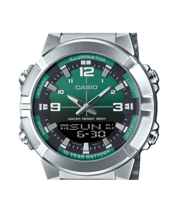 Casio Analog Digital Combination Stainless Steel Green Dial Quartz AMW-870DA-3AV Men's Watch