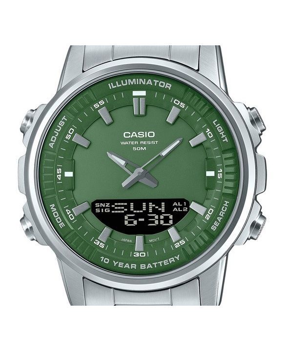 Casio Analog Digital Stainless Steel Green Dial Quartz AMW-880D-3AV Men's Watch