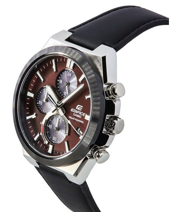 Casio Edifice Analog Chronograph Leather Strap Burgundy Dial Solar EQS-950BL-5A 100M Men's Watch