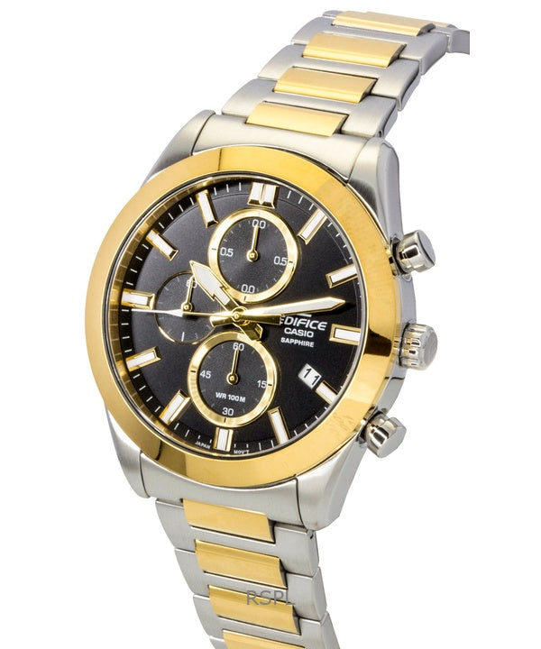 Casio Edifice Analog Chronograph Two Tone Stainless Steel Black Dial Quartz EFB-710SG-1AV 100M Men's Watch