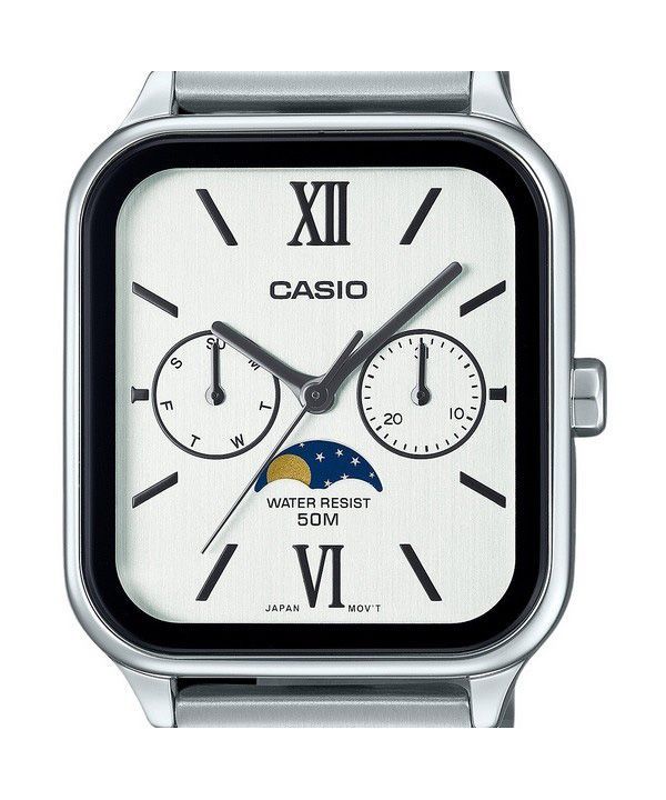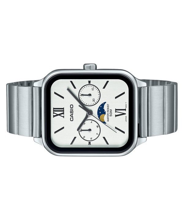 Casio Standard Analog Moon Phase Stainless Steel White Dial Quartz MTP-M305D-7A2V Men's Watch