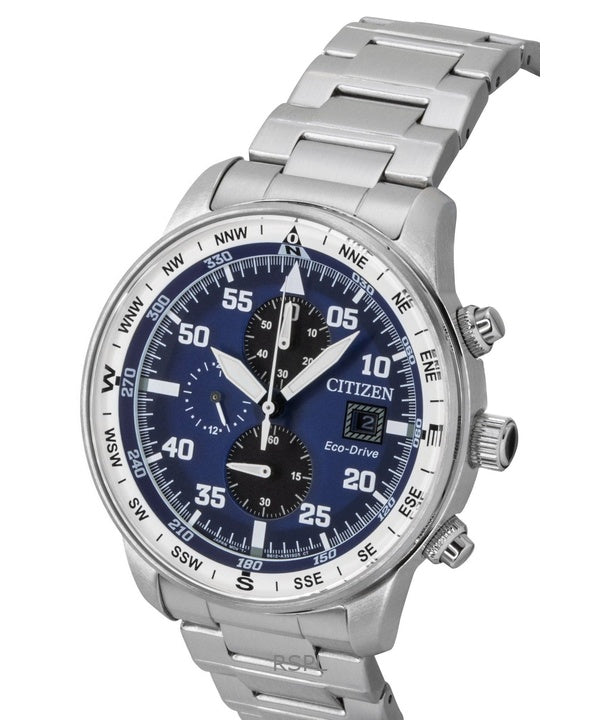 Citizen Eco-Drive Aviator Chronograph Stainless Steel Blue Dial CA0880-58L 100M Men's Watch