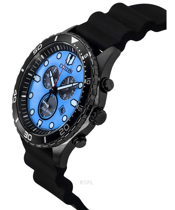 Citizen Eco-Drive Chronograph Polyurethane Strap Blue Dial AT2567-18L 100M Men's Watch