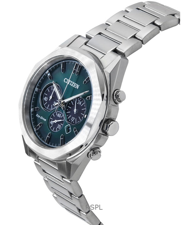 Citizen Eco-Drive Chronograph Stainless Steel Green Dial CA4590-81X 100M Men's Watch