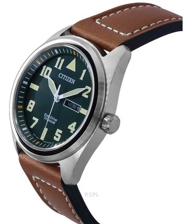 Citizen Eco-Drive Super Titanium Leather Strap Green Dial BM8560-11X 100M Men's Watch