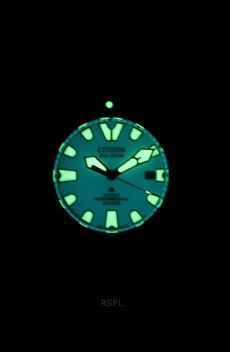 Citizen Promaster PU Strap Green Dial Eco-Drive Divers BJ8055-04X 300M Mens Watch