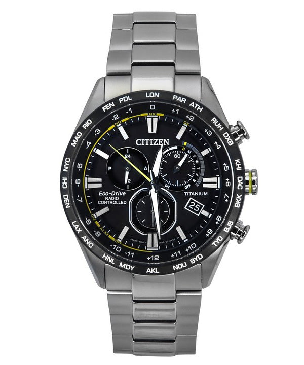 Citizen Radio Controlled Chronograph Super Titanium Black Dial Eco-Drive CB5947-80E 100M Men's Watch