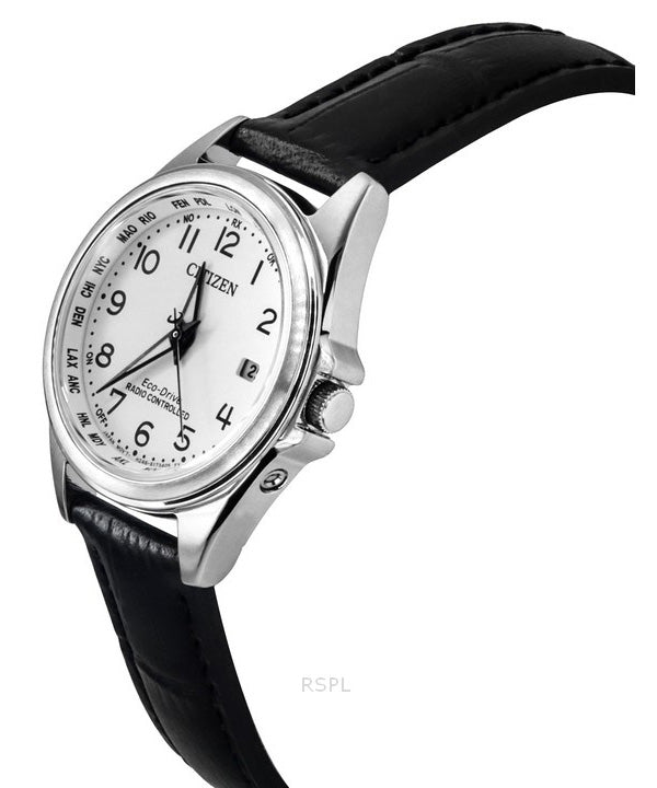 Citizen Radio Controlled Leather Strap White Dial Eco-Drive EC1180-14A 100M Women's Watch