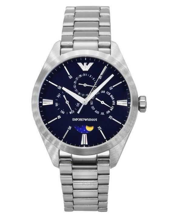Emporio Armani Moon Phase Stainless Steel Multifunction Blue Dial Quartz AR11553 Men's Watch