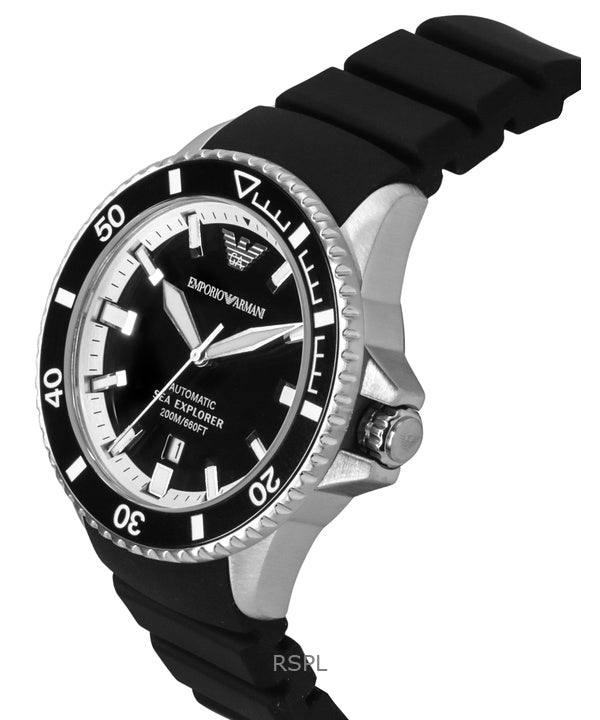 Emporio Armani Sea Explorer Silicone Strap Black Dial Automatic Diver's AR60078 200M Men's Watch