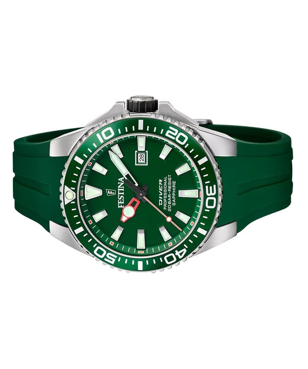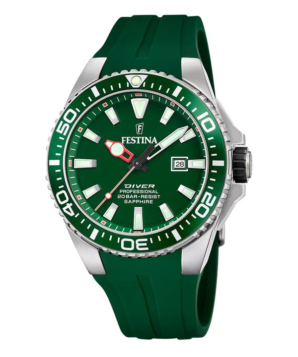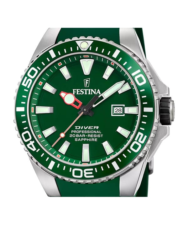 Festina The Originals Rubber Strap Green Dial Quartz Diver's F20664-2 200M Men's Watch