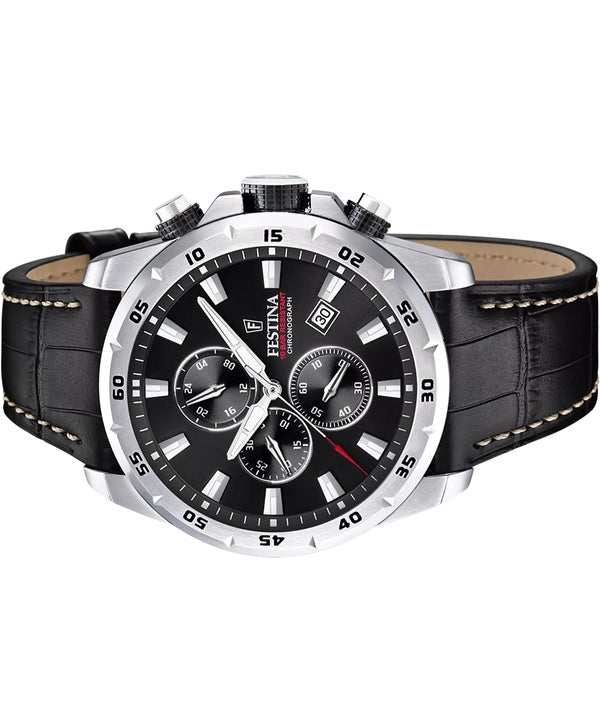 Festina Timeless Chronograph Leather Strap Black Dial Quartz F20692-4 100M Men's Watch