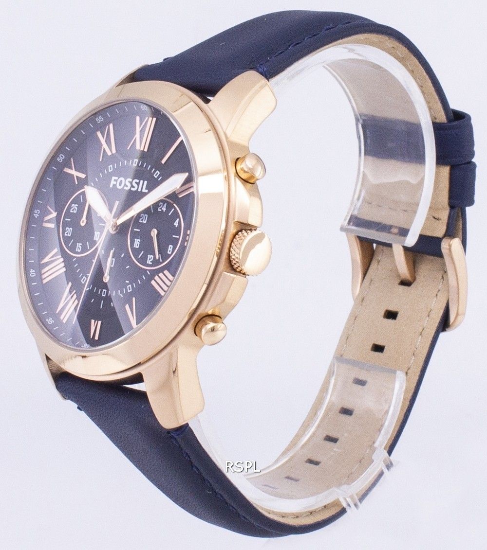 Fossil Grant Chronograph Blue Leather Strap FS4835 Mens Watch