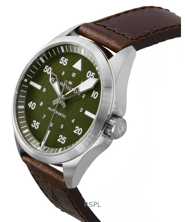 Hamilton Khaki Aviation Pilot Leather Strap Green Dial Automatic H76305560 100M Men's Watch