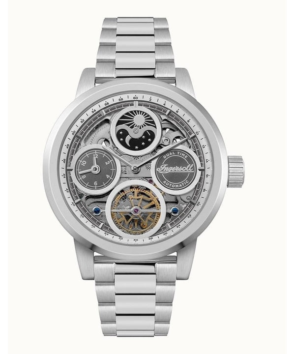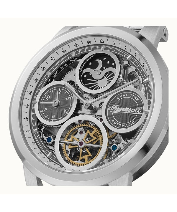Ingersoll The Arc Moon Phase Stainless Steel Silver Skeleton Dial Automatic I16002 Men's Watch