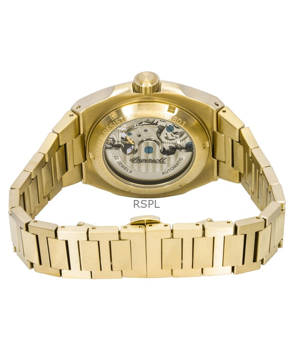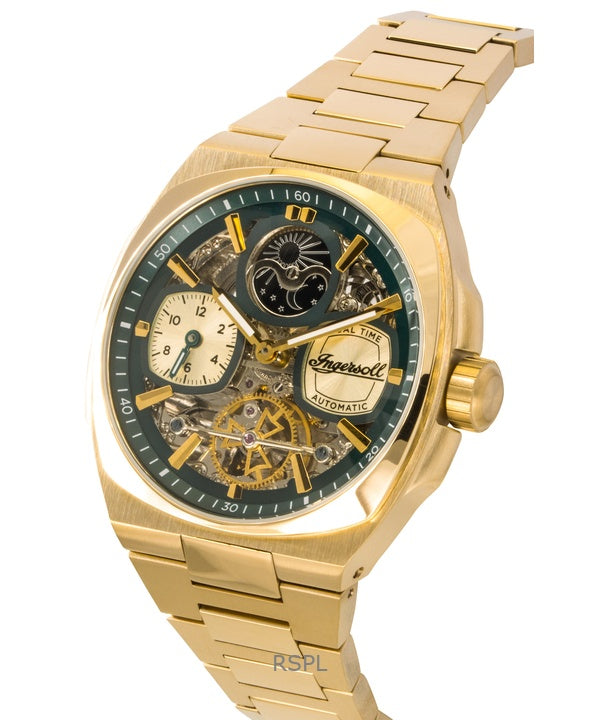 Ingersoll The Spirit Gold Tone Stainless Steel Green Skeleton Dial Automatic I15803 Men's Watch