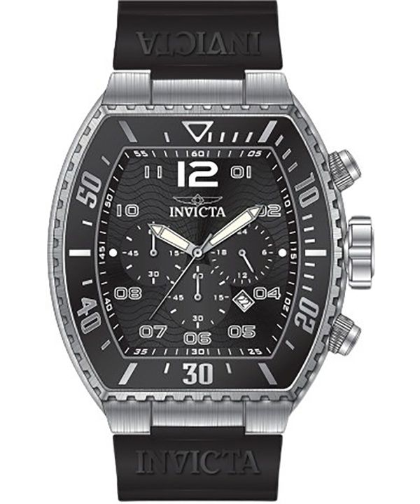 Invicta Pro Diver Chronograph Silicone Strap Black Dial Quartz 47282 100M Mens Watch