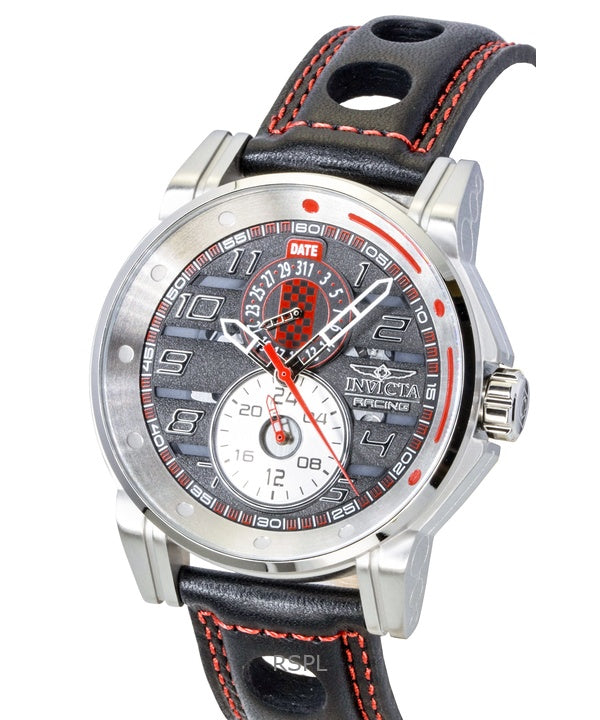 Invicta Racing Leather Strap Skeleton Black Dial Quartz 47533 Men's Watch
