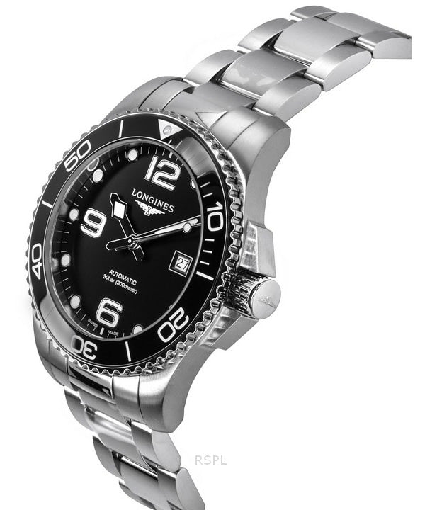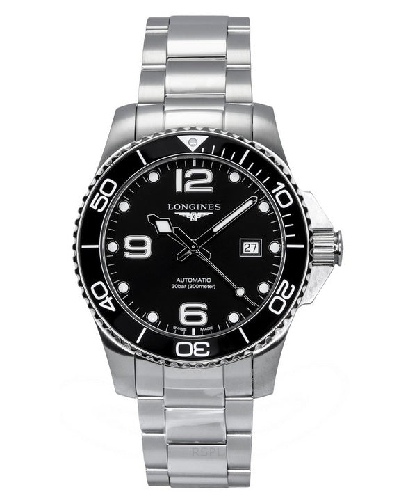 Longines Hydroconquest Stainless Steel Sunray Black Dial Automatic Diver's L3.782.4.56.6 300M Men's Watch
