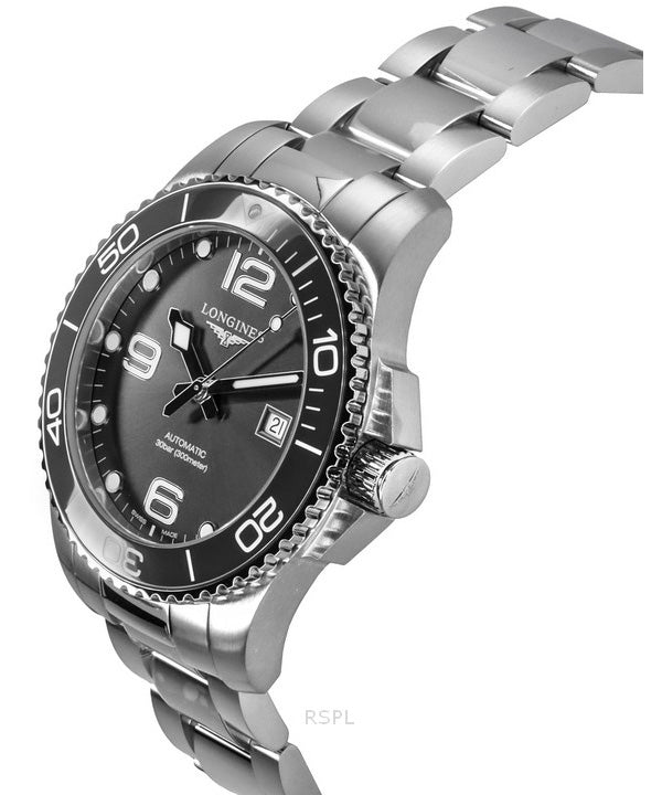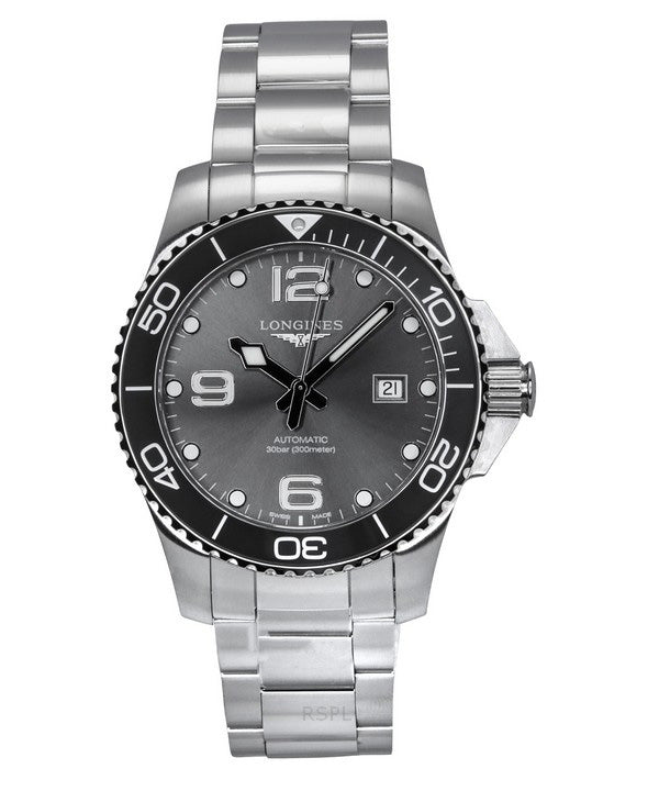 Longines Hydroconquest Stainless Steel Sunray Grey Dial Automatic Diver's L3.782.4.76.6 300M Men's Watch