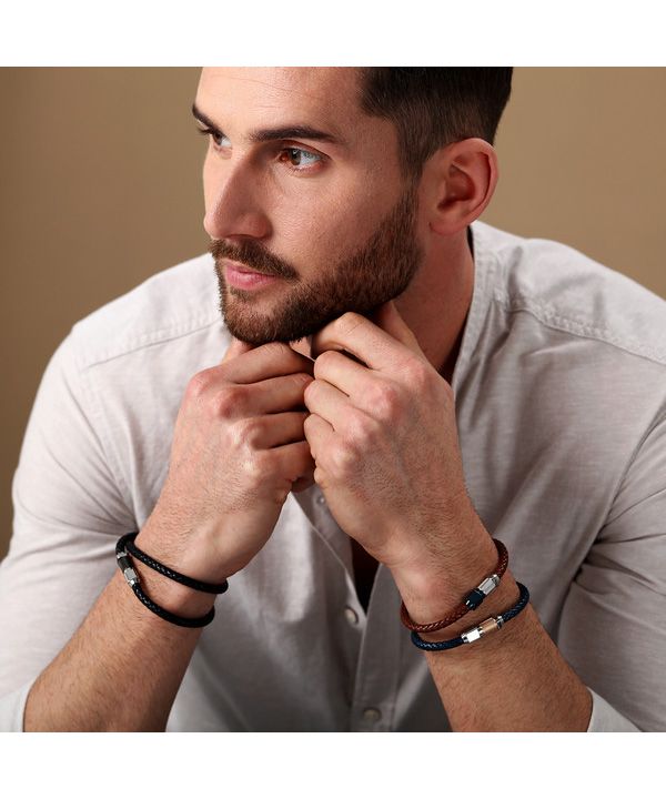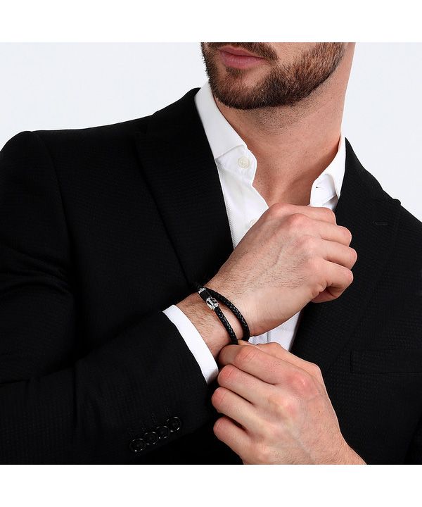 Maserati Jewels Recycled Leather And Stainless Steel Bracelet JM223AVE18 For Men