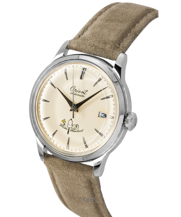 Orient Bambino Peanuts 75th Anniversary Limited Edition Leather Strap Champagne Dial Automatic RA-AC0M17G Men's Watch