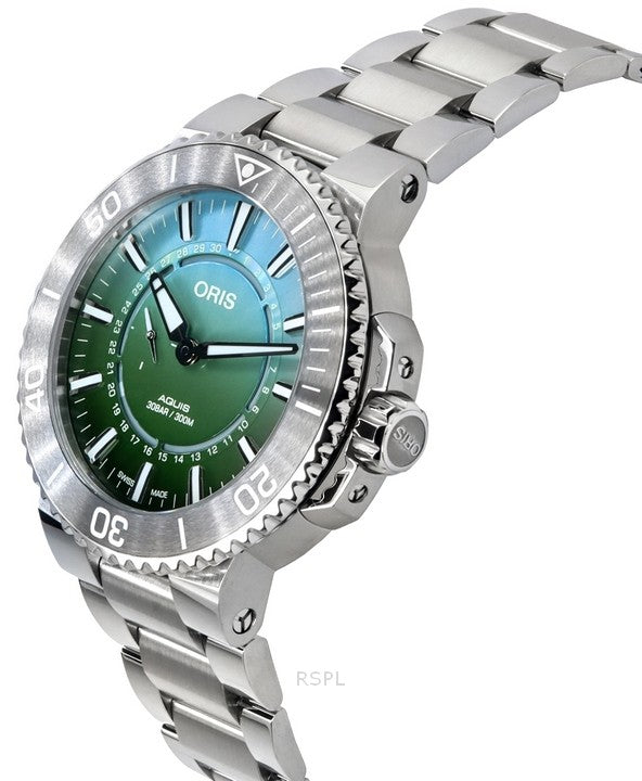 Oris Aquis Analog Limited Edition Green Dial Automatic Diver's 01 743 7734 4197-Set 300M Men's Watch With Rubber Strap