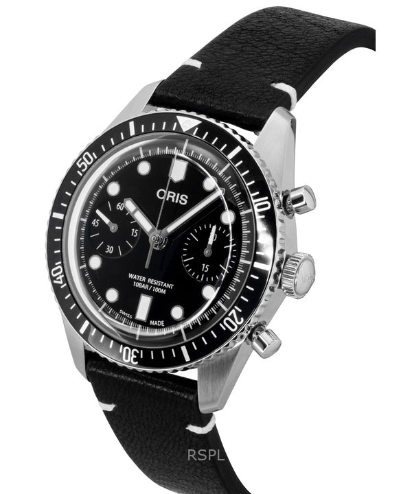 Oris Divers Sixty-Five Chronograph Leather Strap Black Dial Automatic 01-771-7791-4054-07-6-20-01 100M Men's Watch