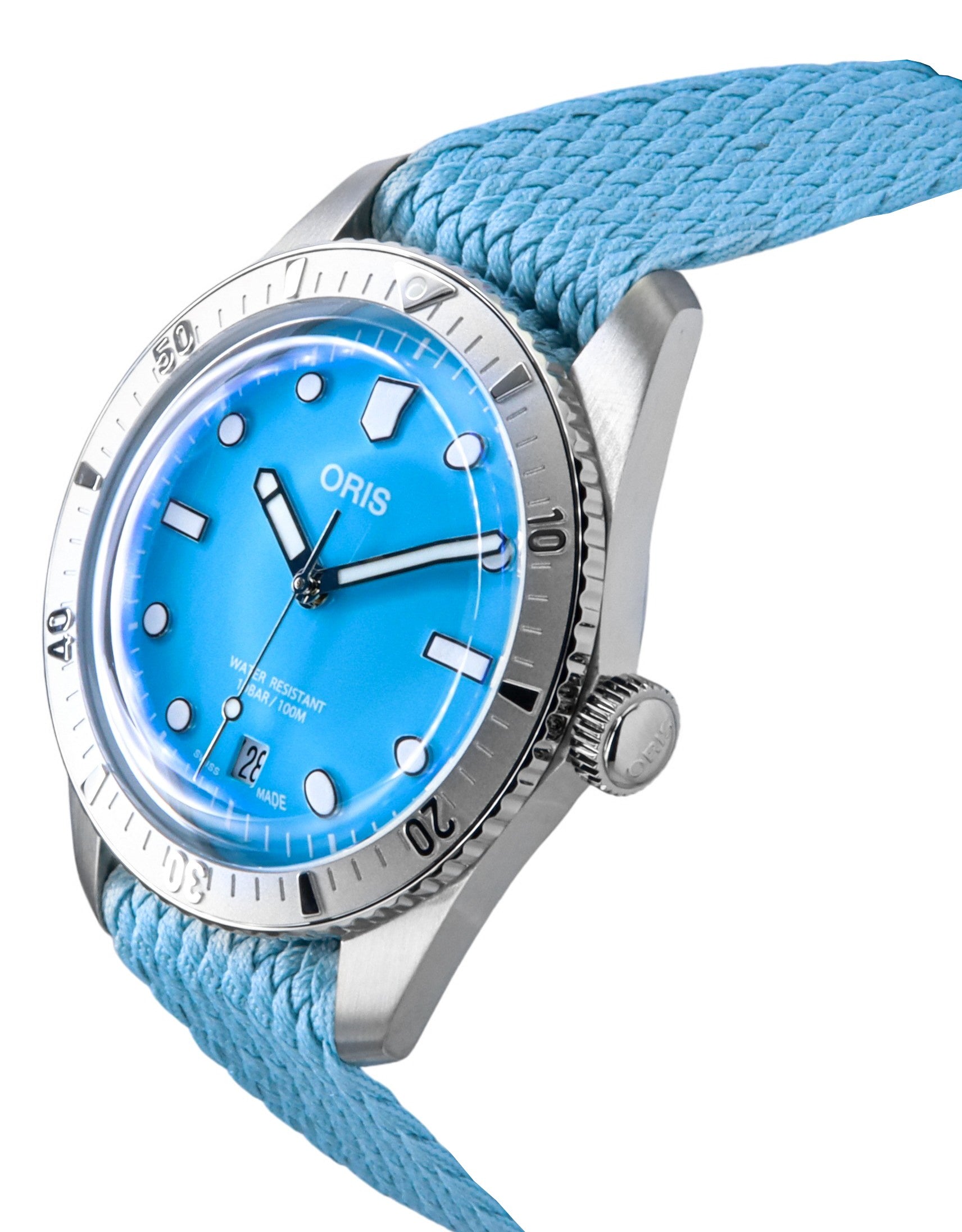 Oris Divers Sixty-Five Cotton Candy Textile Strap Blue Dial Automatic 01-733-7771-4055-07-3-19-02S 100M Unisex Watch