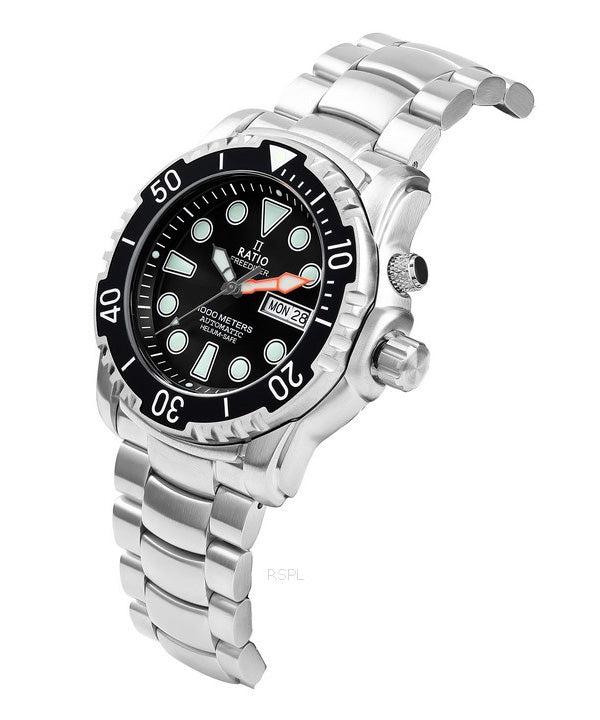 • It’s well-done and constructed solidly. The Ratio FreeDiver Helium-Safe 1000M Sapphire Automatic 1068HA96-34VA-BLK Men's Watch is an all-round instrument for marine enthusiasts and desk-divers alike. This one joined the hit parade immediately after the 200m Freediver made to the scene and became an instant hit.