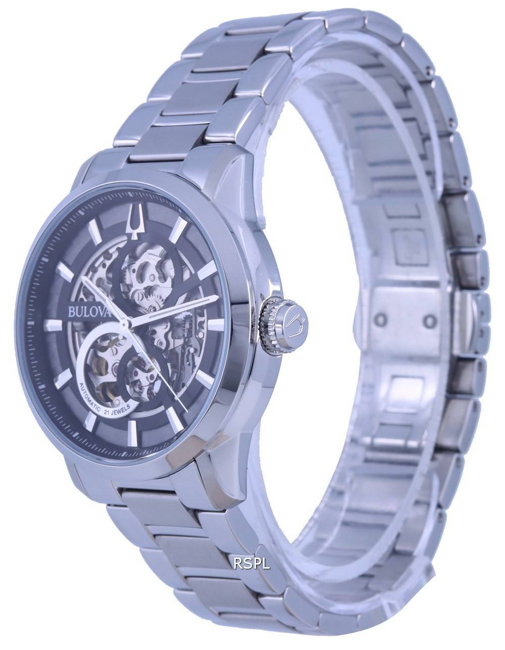Refurbished Bulova Classic Skeleton Black Dial Stainless Steel Automatic 96A208 Men's Watch