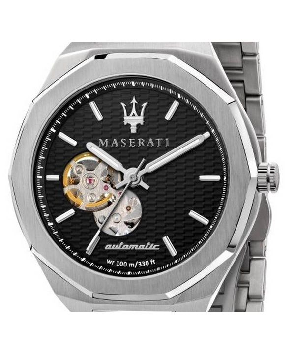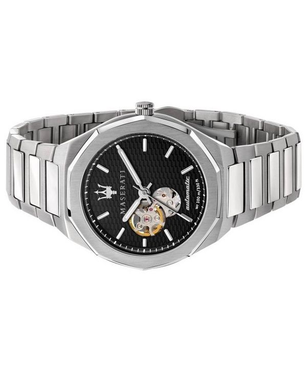 Refurbished Maserati Stile Open Heart Black Dial Stainless Steel Automatic R8823142002 100M Men's Watch