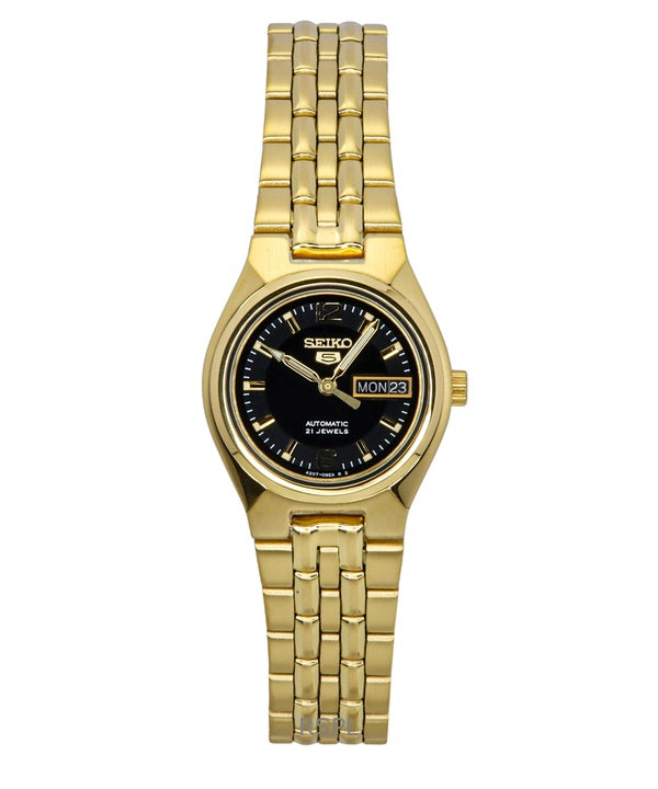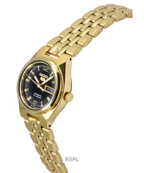 Seiko 5 Gold Tone Stainless Steel Black Dial Automatic SYMK38K1 Women's Watch