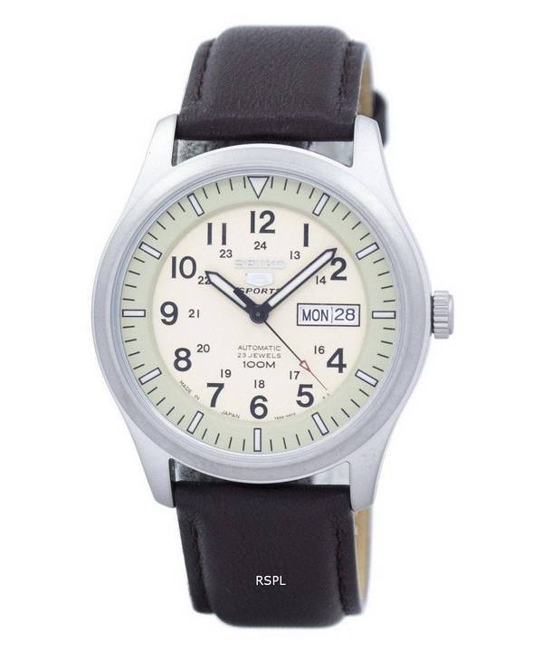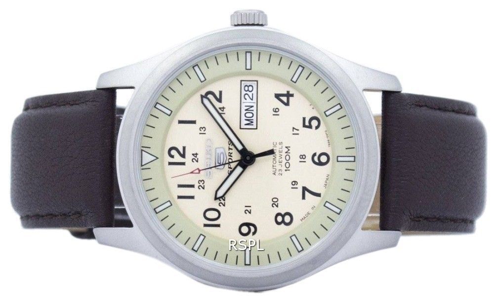 Seiko 5 Sports Military Automatic Japan Made Ratio Dark Brown Leather SNZG07J1-LS11 Men's Watch