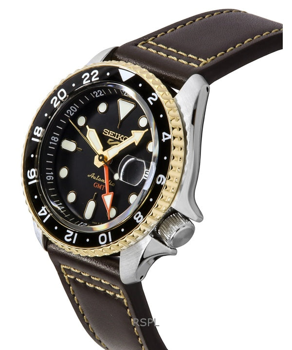 Seiko 5 Sports SKX GMT Leather Strap Brown Dial Automatic SSK036K1 100M Men's Watch