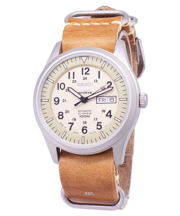 Seiko 5 Sports SNZG07J1-LS18 Military Japan Made Brown Leather Strap Men's Watch