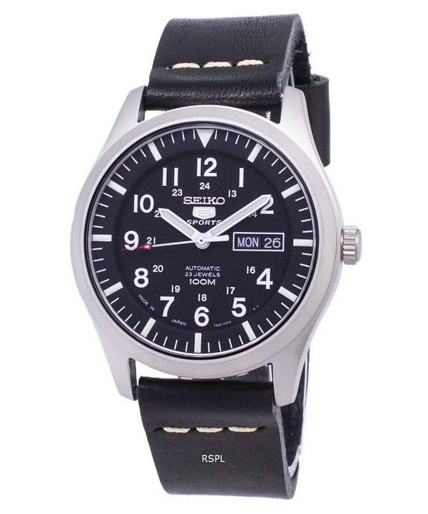 Seiko 5 Sports SNZG15J1-LS14 Japan Made Black Leather Strap Men's Watch
