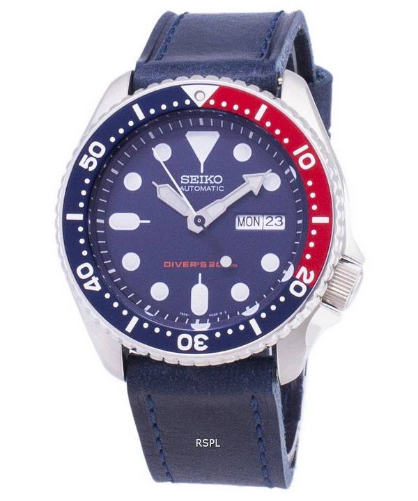 Seiko Automatic SKX009K1-LS13 Diver's 200M Dark Blue Leather Strap Men's Watch