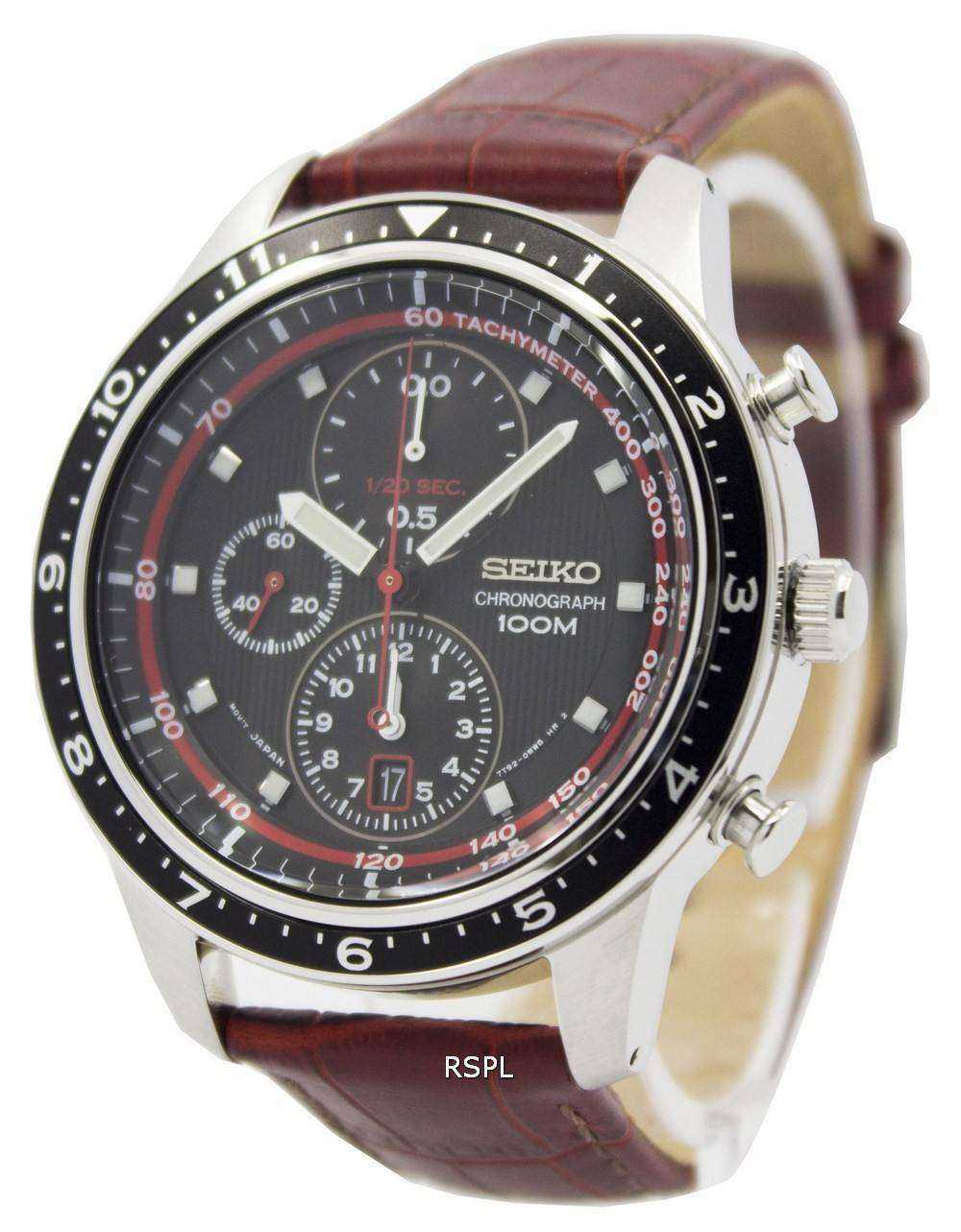 Seiko Chronograph Brown Leather Strap 100M SNDF45P1 SNDF45P Mens Watch