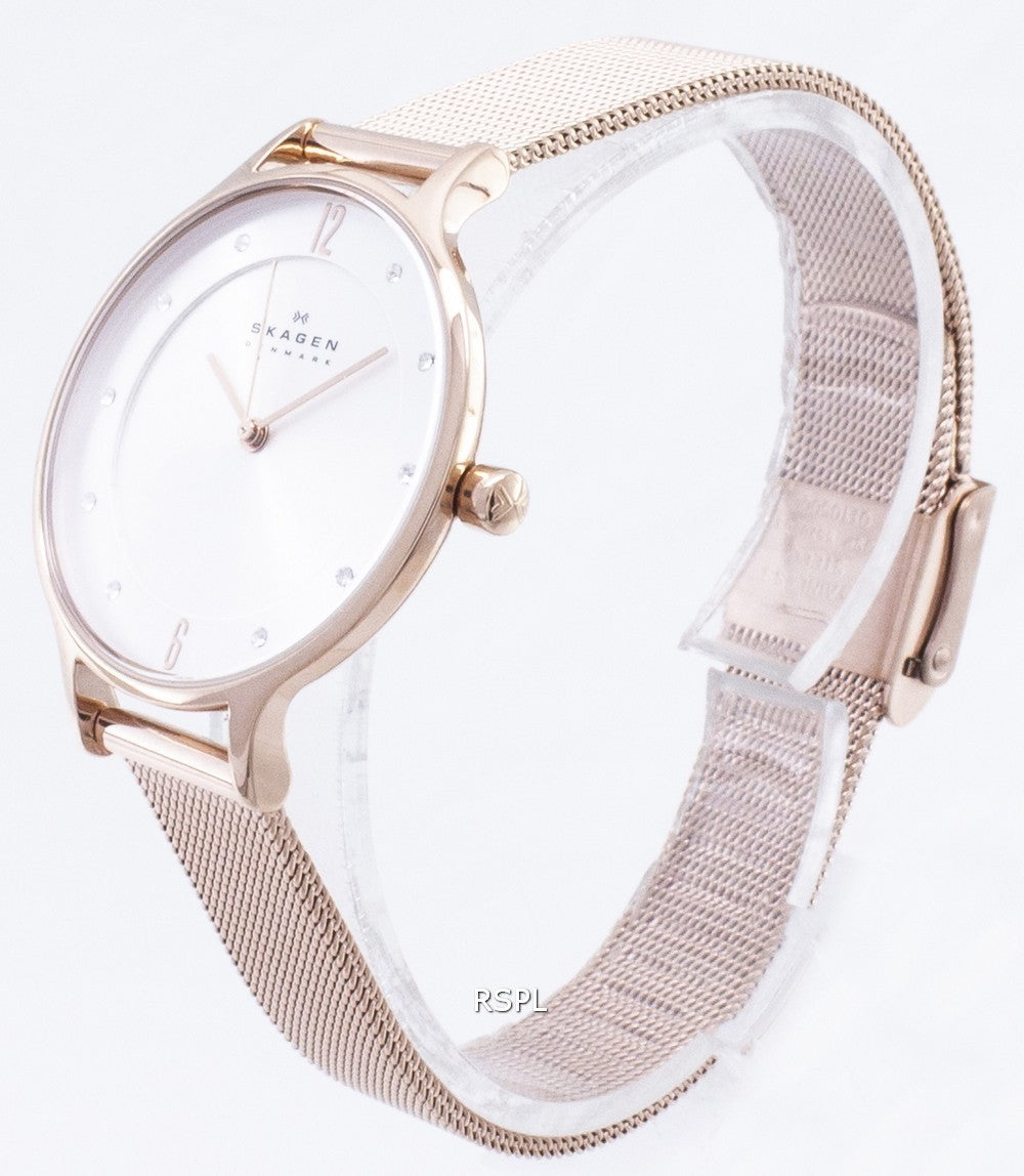 Skagen Anita Silver Dial Crystal Rose Gold-Tone Mesh Bracelet SKW2151 Womens Watch