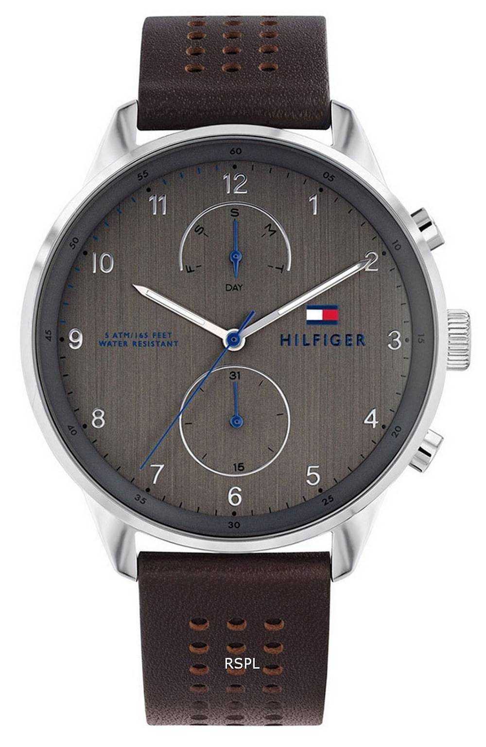 Tommy Hilfiger Chase Grey Dial Leather Strap Quartz 1791579 Men's Watch