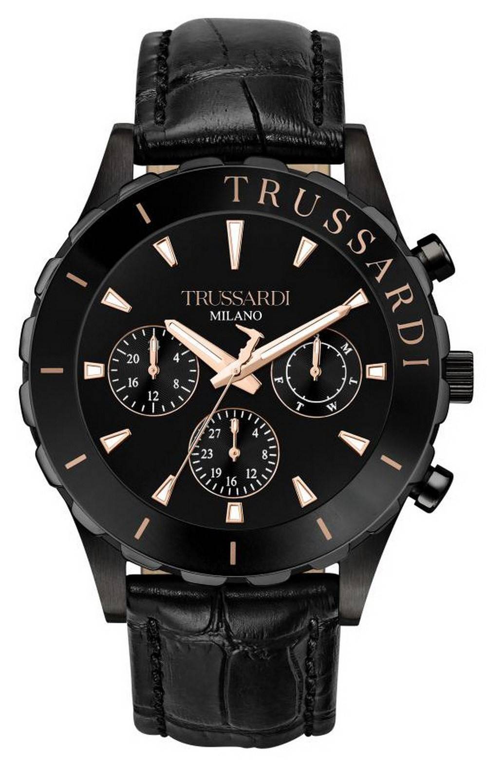 Trussardi T-Logo Black Dial Leather Strap Quartz R2451143003 Men's Watch